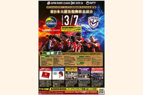 「釜石シーウェイブス」復興記念試合3月7日(土)開催!